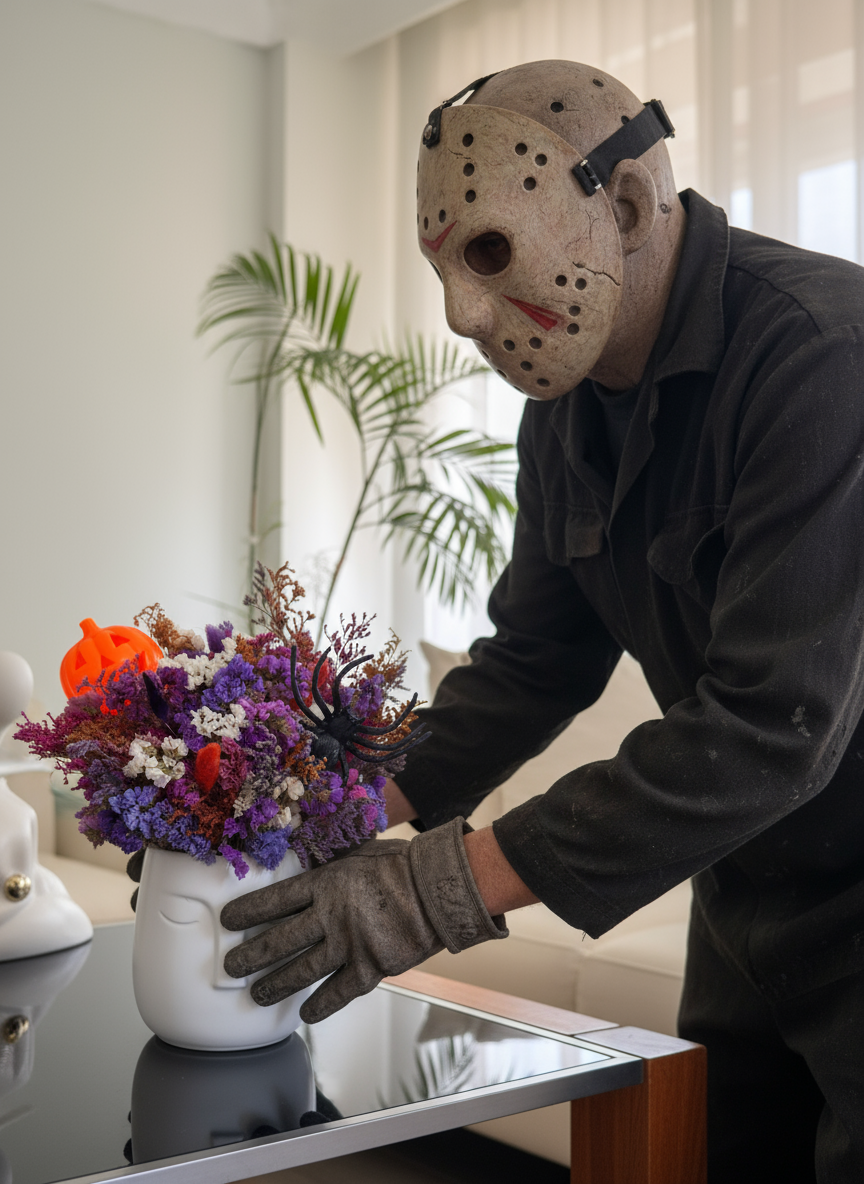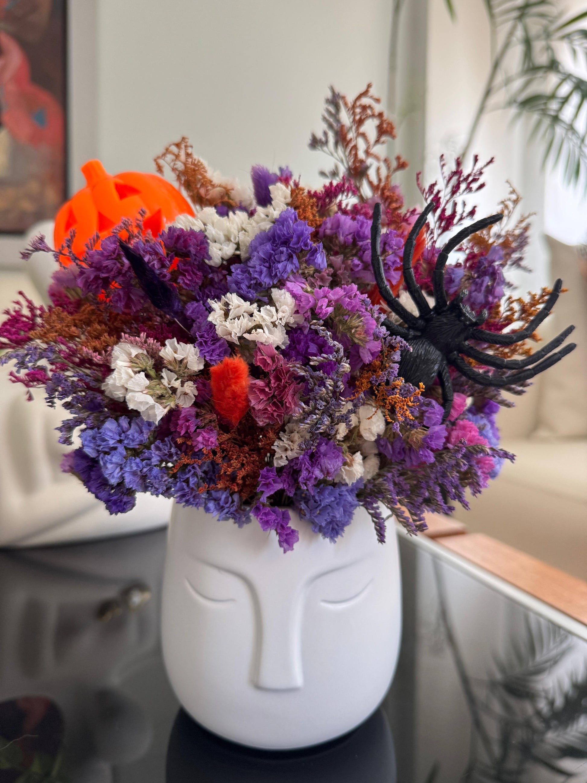 ¡Celebra Halloween con estilo! Nuestro arreglo de flores secas "Mi niña bonita Halloween" 🎃 es perfecto para añadir un toque espeluznante a tu decoración. Elaborado con flores secas y preservadas, es el regalo ideal para amigos y familiares.