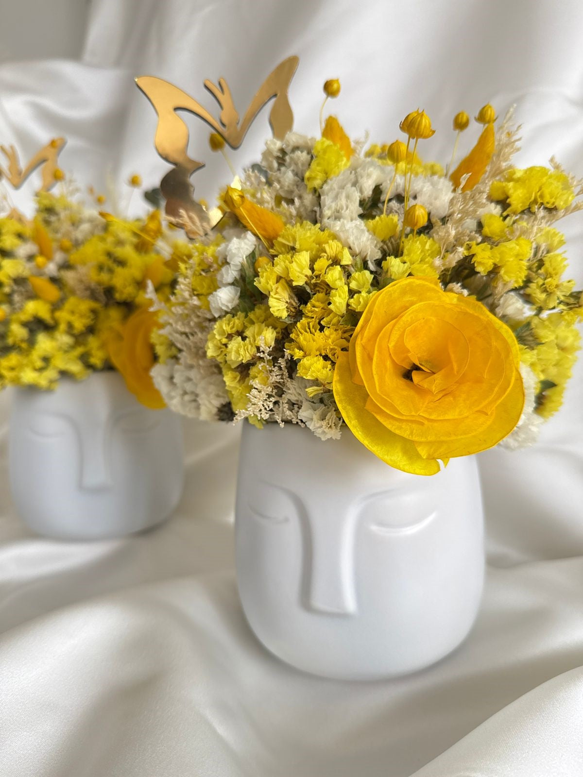 Sorprende este 21 de septiembre con el arreglo "Mi niña bonita" de flores secas amarillas, un detalle que combina belleza natural y durabilidad. Ideal para expresar cariño y alegría, este arreglo aporta calidez y estilo a cualquier espacio.