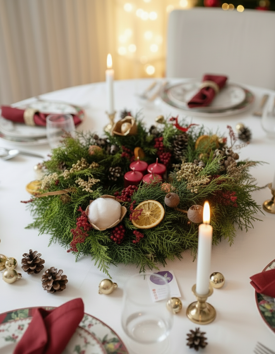 Corona de Adviento 2025 acentos rojo y dorado