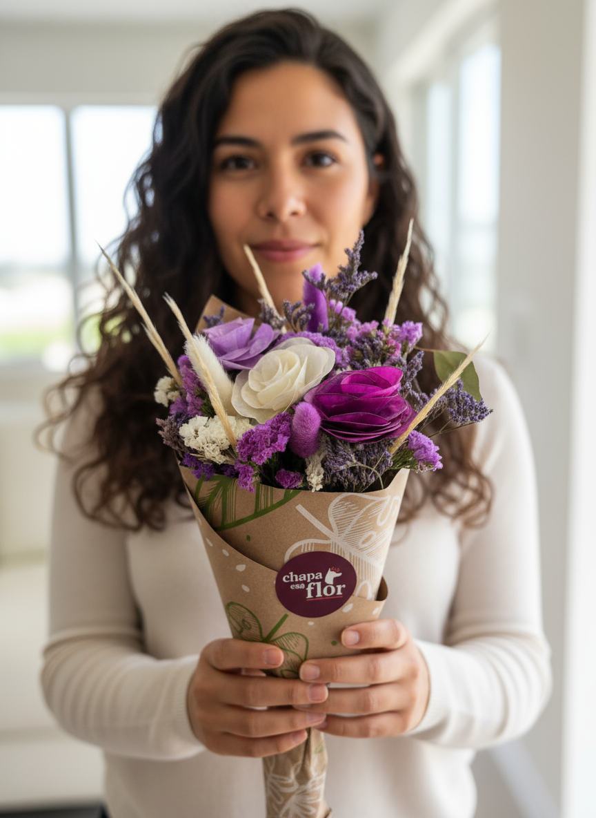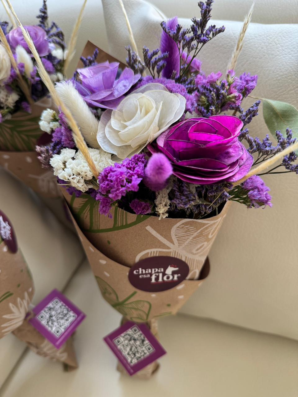 Este ramo de flores secas en tonos morados aporta un toque elegante y duradero a cualquier ambiente. Perfecto para decorar espacios con un estilo natural y sofisticado,