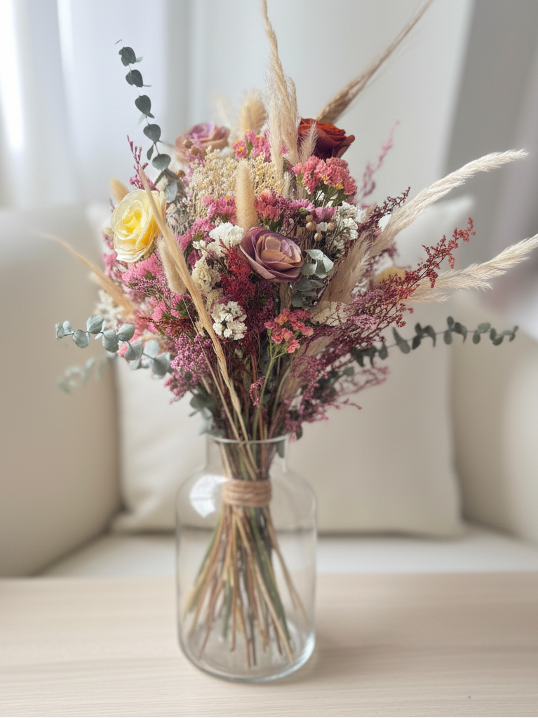 - Jaspias, estatis, eucalipto, otras semillas y follajes secos.